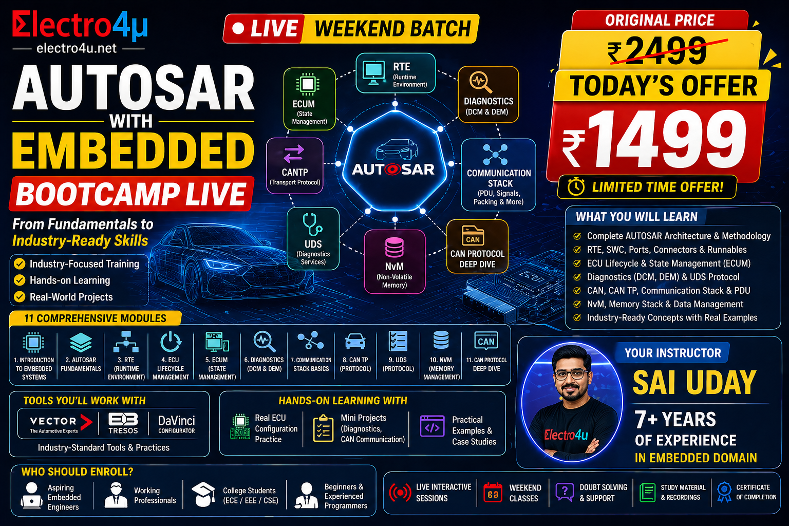 Join our AUTOSAR Embedded Bootcamp Live and master Embedded Systems from basics to advanced. Learn RTE, ECU, CAN, UDS, NvM with real-world projects and industry-focused training.