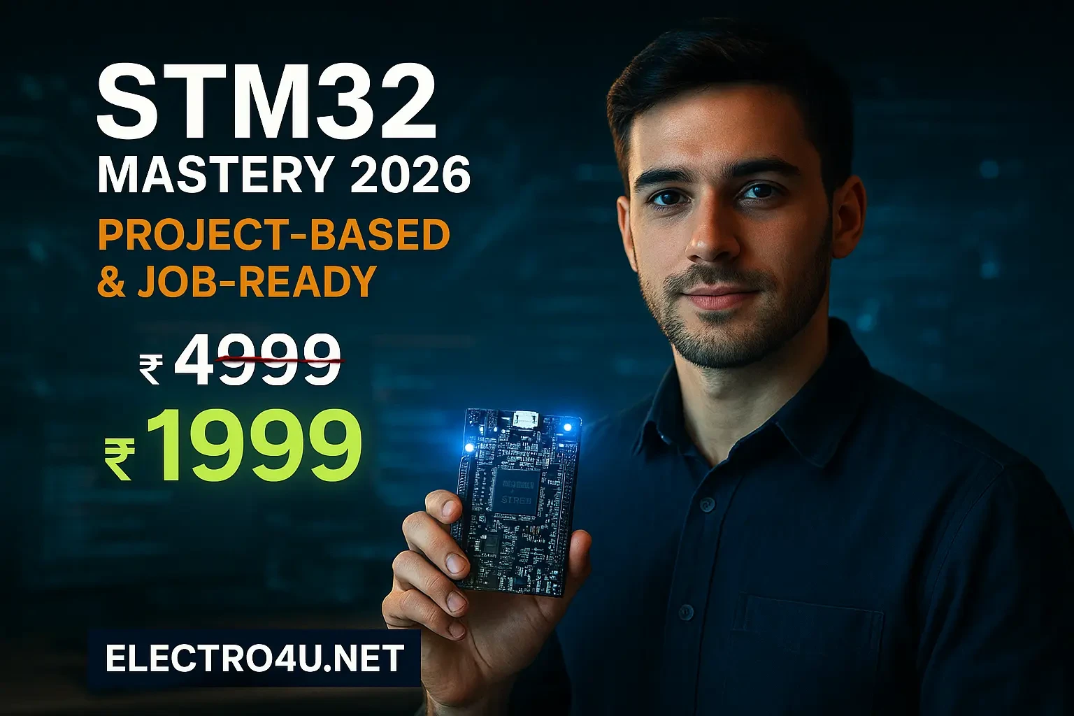 STM32 Mastery 2026: Project-Based & Industry-Ready is a complete hands-on program designed to transform you into a confident, job-ready embedded engineer. Whether you are a beginner or someone with basic microcontroller knowledge, this course takes you step-by-step through real-world STM32 projects, industry workflows, and professional embedded development practices. You’ll learn how to work with STM32 peripherals, write clean and efficient firmware, interface sensors and communication modules, and build real hardware projects—just like engineers do in companies. No boring theory. Every module is project-driven. By the end of this course, you will confidently design, code, and debug embedded systems using STM32, giving you the skills required for internships, jobs, and professional embedded development.