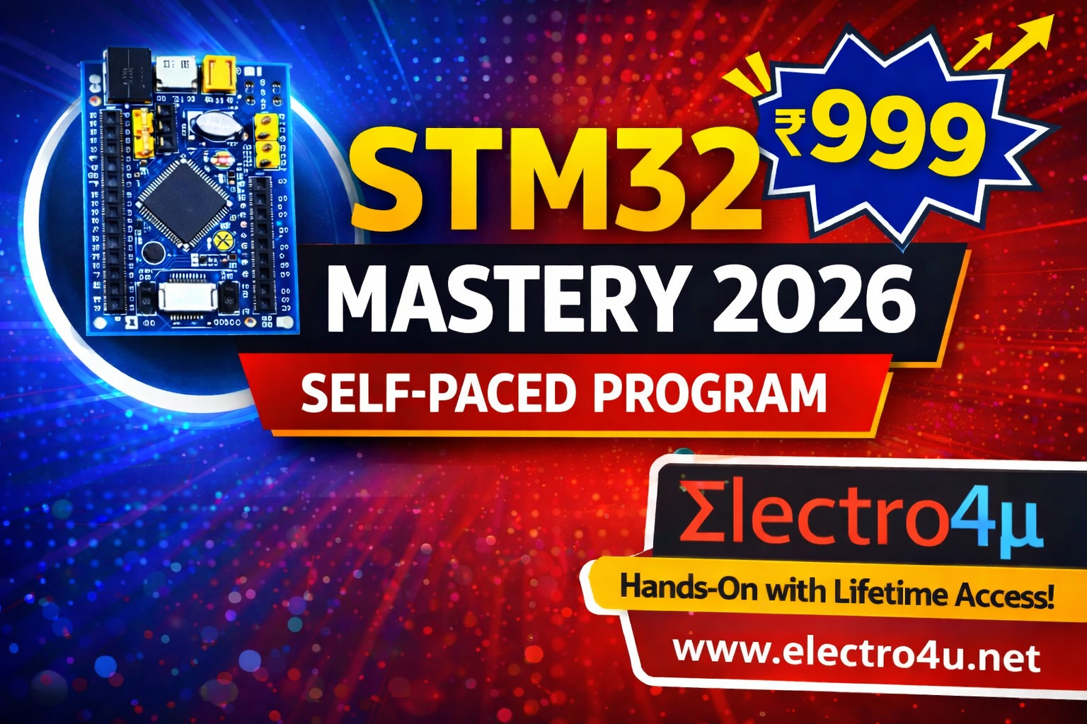 STM32 Mastery 2026 Recorded Program is a complete project-based embedded systems course designed for learners who want flexibility. Learn STM32 step-by-step through real hardware projects, industry workflows, and professional firmware development practices — all at your own pace. This self-paced program gives you: ✅ Structured project-based modules ✅ Clear peripheral programming concepts ✅ Real-world STM32 implementations ✅ Lifetime access to all recordings No unnecessary theory. Every module is practical and implementation-focused. By the end of this course, you’ll confidently design and develop STM32-based embedded systems — ready for internships, projects, and job opportunities.